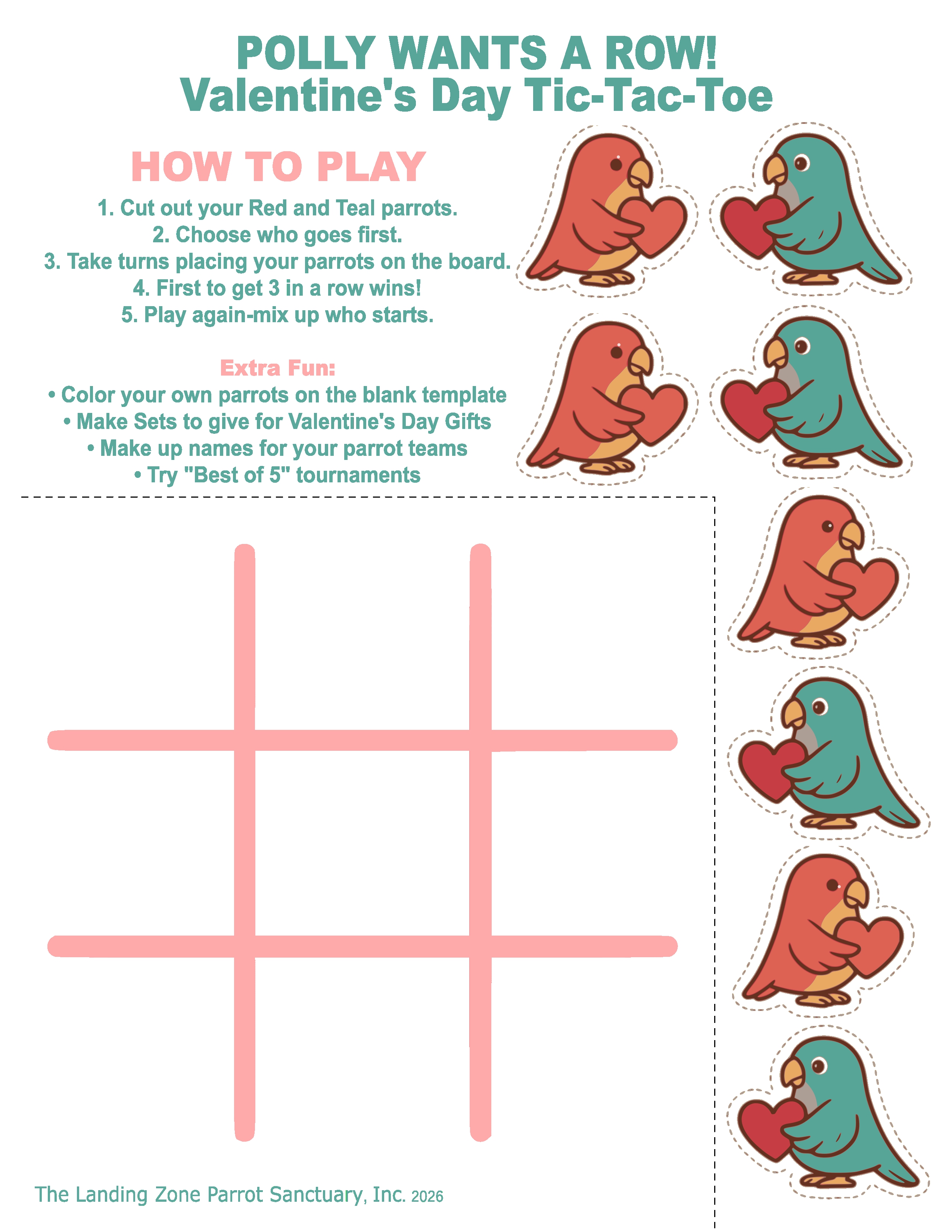 | Kid's Activity Zone Calling all curious kids and budding bird lovers! Dive into a world of color, feathers, and fun with our free parrot-themed activities. From coloring pages and connect-the-dots to word searches and DIY ornaments, every activity is designed to spark creativity while teaching you cool facts about parrots from around the globe. Perfect for classrooms, rainy days, or just a wild adventure from home. Let’s make learning about parrots a squawk-tacular experience! 🖍️ Start exploring now:🖍 ️ Games and Activities: Flap, Flap, Freeze! (Toddlers+) | Drawing Pages | Connect-The-Dots | Word Search | Crossword Holidays: Valentine's Day: Tic-Tac-Toe Halloween: Trick-or-Treat Seed Pack, Parrot Pumpkin Coloring Sheets, Garden Journal Christmas: Gift Wrap | Parrot-Themed Christmas Chain | Ornaments Refresh to check for new content!