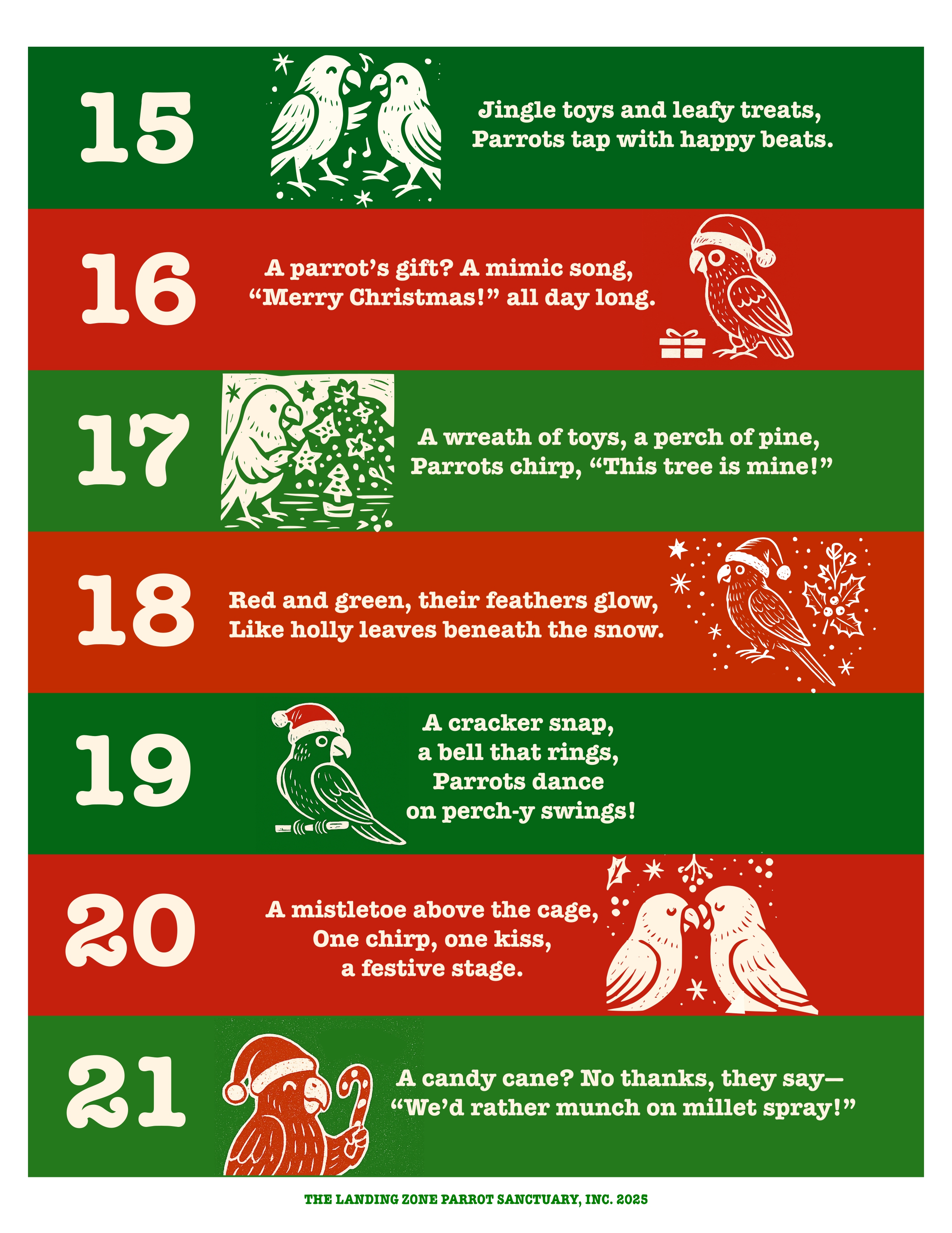 These wraps are part of our Kids Zone Holiday Bundle: celebrating creativity, sanctuary joy, and the magic of giving. Thank you for supporting our parrots and their playful world!