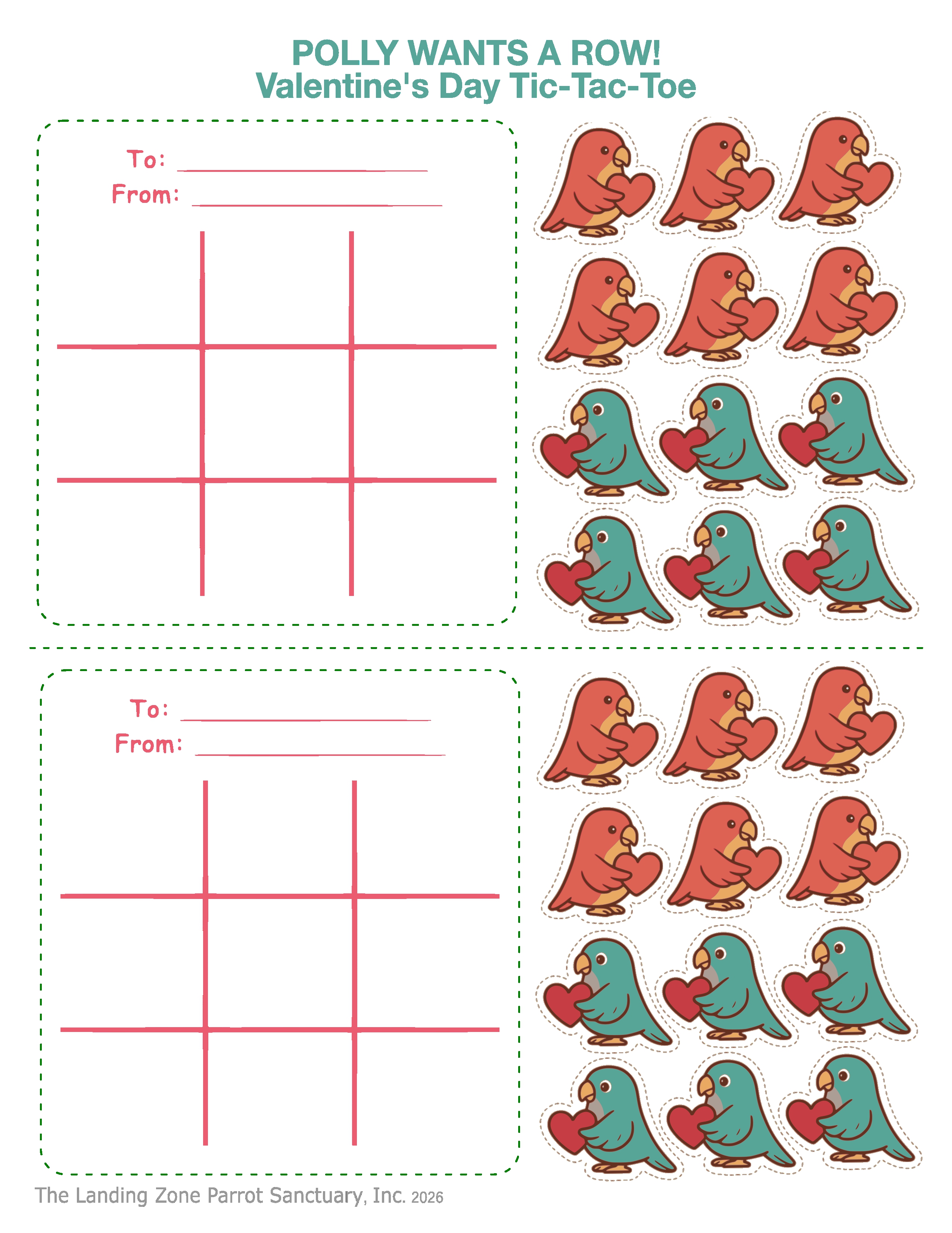 | Kid's Activity Zone Calling all curious kids and budding bird lovers! Dive into a world of color, feathers, and fun with our free parrot-themed activities. From coloring pages and connect-the-dots to word searches and DIY ornaments, every activity is designed to spark creativity while teaching you cool facts about parrots from around the globe. Perfect for classrooms, rainy days, or just a wild adventure from home. Let’s make learning about parrots a squawk-tacular experience! 🖍️ Start exploring now:🖍 ️ Games and Activities: Flap, Flap, Freeze! (Toddlers+) | Drawing Pages | Connect-The-Dots | Word Search | Crossword Holidays: Valentine's Day: Tic-Tac-Toe Halloween: Trick-or-Treat Seed Pack, Parrot Pumpkin Coloring Sheets, Garden Journal Christmas: Gift Wrap | Parrot-Themed Christmas Chain | Ornaments Refresh to check for new content!